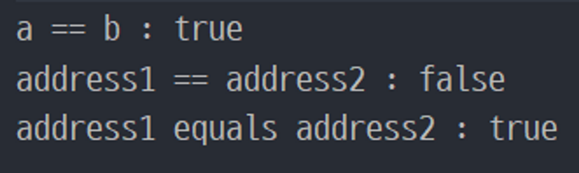 - 동등성(equivalence) 비교 : 인스턴스의 값을 비교 (equals() 사용)