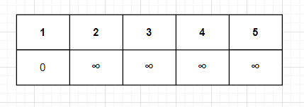 최단 거리 값을 저장하기 위한 배열을 만든다. 출발 노드는 0, 나머지 노드는 매우 큰 값으로 초기화한다.