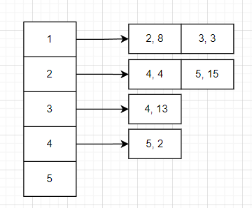 A[s].add(new Edge(e, w)); //인접 리스트에 그래프 정보 저장