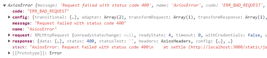 - error.request: 요청이 수행되었지만 클라이언트가 응답을 받지 못했음을 의미