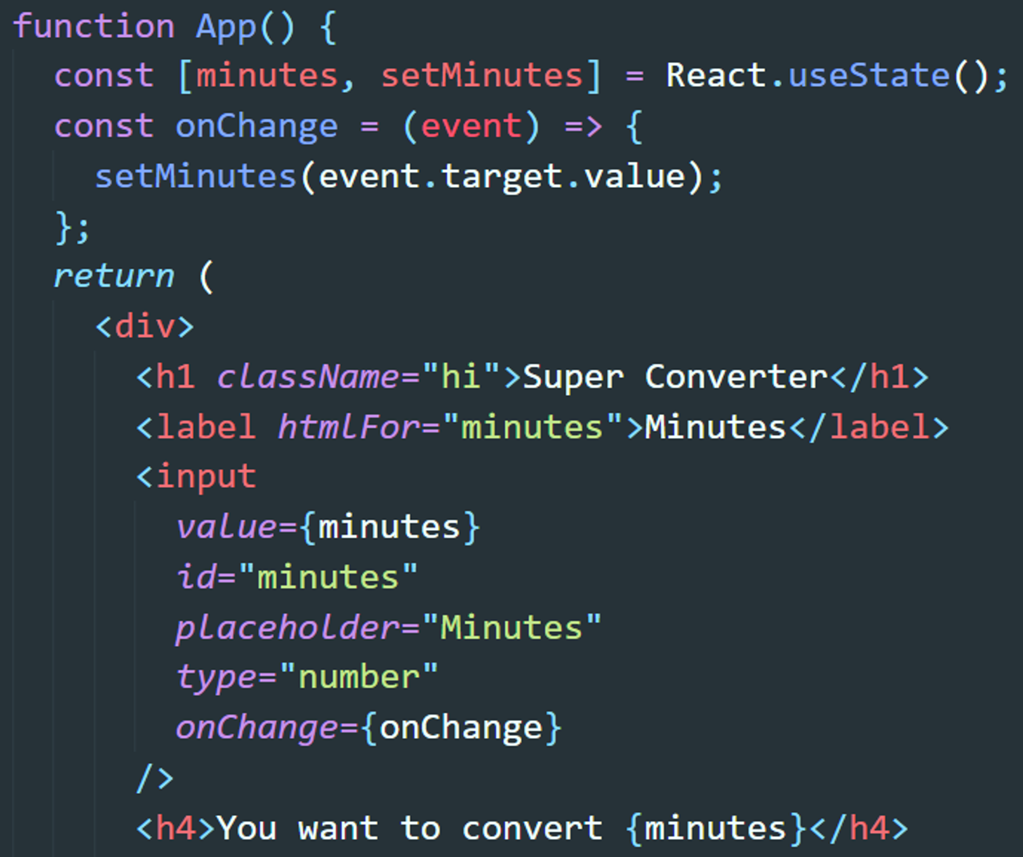 어떤 작업을 하고 싶다면 onChange에 state를 연결하여 처리할 수 있다.