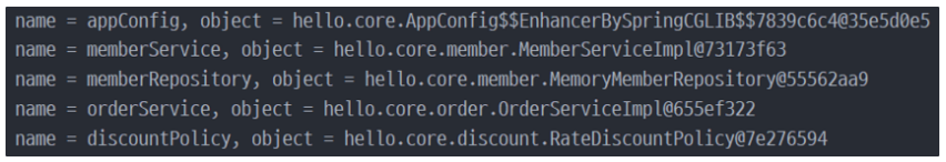 - getBeanDefinitionNames() : 스프링에 등록된 모든 빈 이름 조회