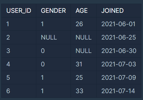 GENDER 컬럼은 비어있거나 0 또는 1의 값을 가지며 0인 경우 남자를, 1인 경우는 여자를 나타냅니다.