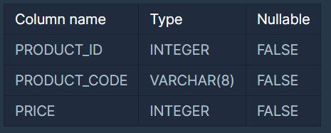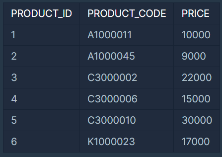 예를 들어 PRODUCT 테이블이 다음과 같다면