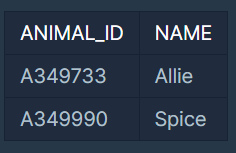 SELECT a.ANIMAL_ID, a.NAME