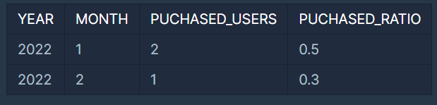 WHERE JOINED LIKE '2021%'), 1) as PUCHASED_RATIO