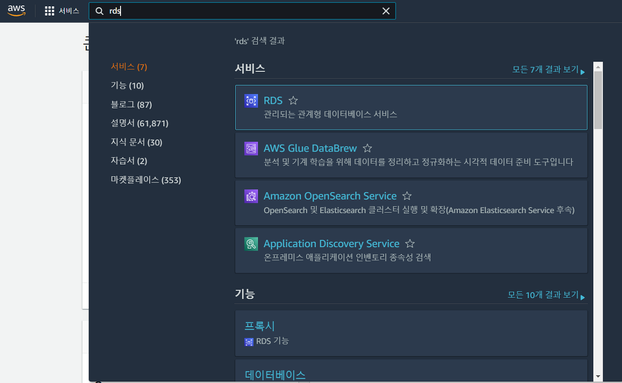 📢 amazon 로그인 후 검색창에 rds 검색