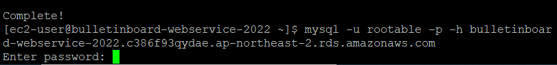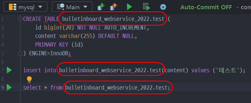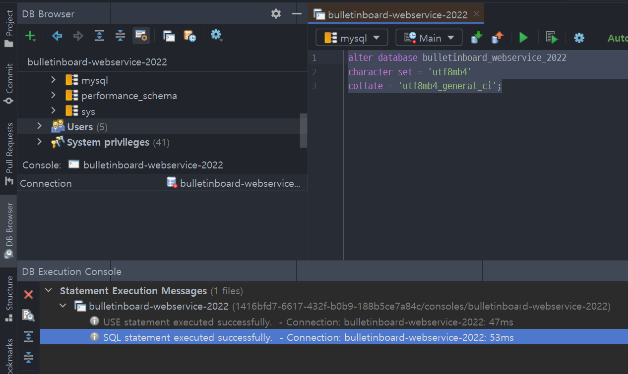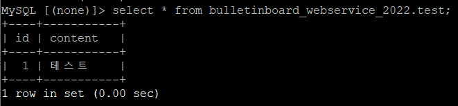 생성했던 bulletinboard_webservice_2022라는 DB가 있음을 확인할 수 있다.