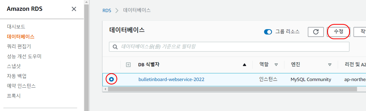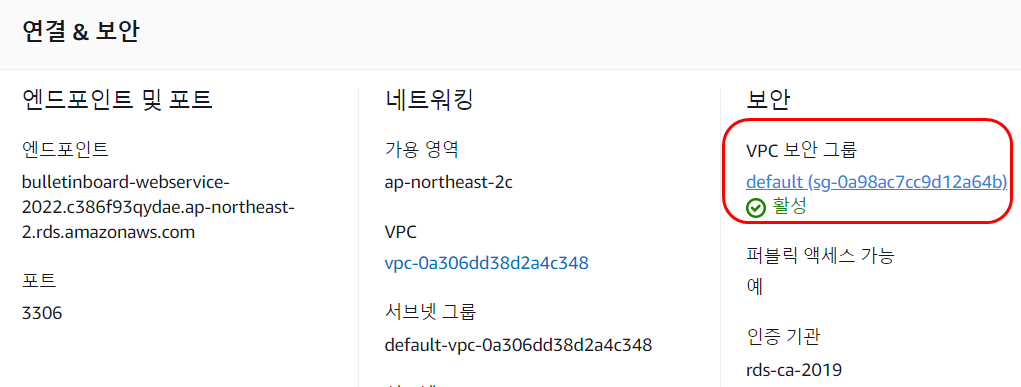 📢 RDS의 세부정보 페이지에서 [보안 그룹] 항목을 클릭