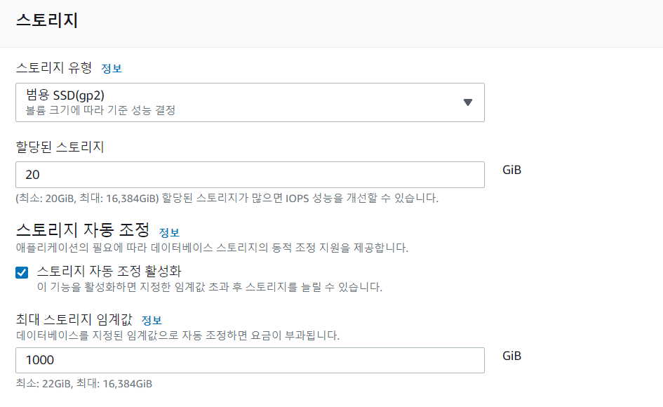 📢 스토리지 항목은 기본 설정으로 진행했다.