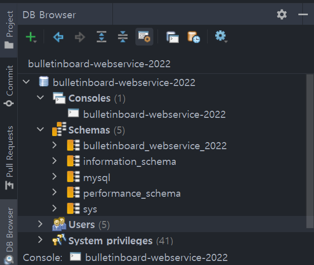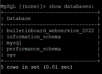 생성했던 bulletinboard_webservice_2022라는 DB가 있음을 확인할 수 있다.