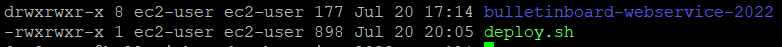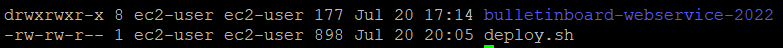 deploy.sh 파일이 생성되었다. 하지만 x(실행) 권한이 없어 기타 사용자가 실행할 수 없다. 다음 명령어로 실행 권한을 주겠다.