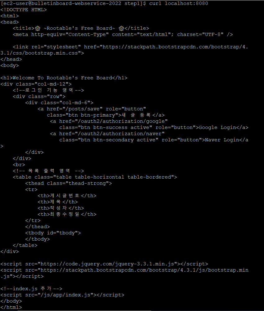 📢 curl 명령어로 html 코드가 정상적으로 보인다면 성공이다.