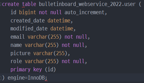 JPA로 테이블이 자동 생성되는 옵션을 None(생성하지 않음)으로 지정한다. RDS에는 실제 운영으로 사용될 테이블이니 절대 스프링 부트에서 새로 만들지 않도록 해야 한다. 이 옵션을 하지 않으면 자칫 테이블이 모두 새로 생성될 수 있다. (주의 바람!)