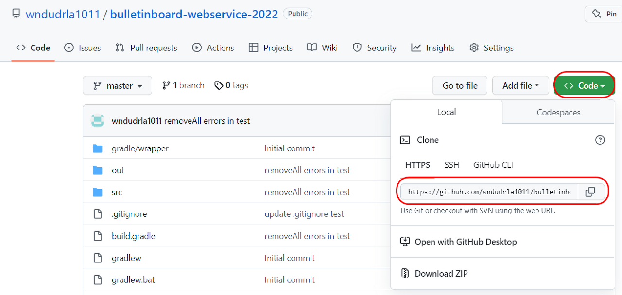 📢 본인의 github 웹페이지에서 https 주소를 복사