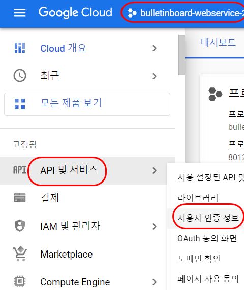 [API 및 서비스 ➡ 사용자 인증 정보]로 이동