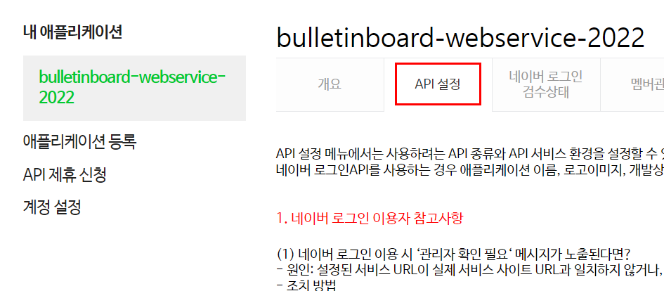 📢 네이버 개발자 센터(https://developers.naver.com/apps/#/myapps)로 접속해서 본인의 프로젝트로 이동