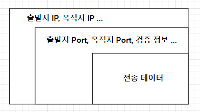상위 계층의 데이터가 하위 계층으로 보내지면, 하위 계층 프로토콜은 자신의 기능 수행을 위해 필요한 부가 정보(Header)를 추가해서 새롭게 전송 메시지를 완성한다.