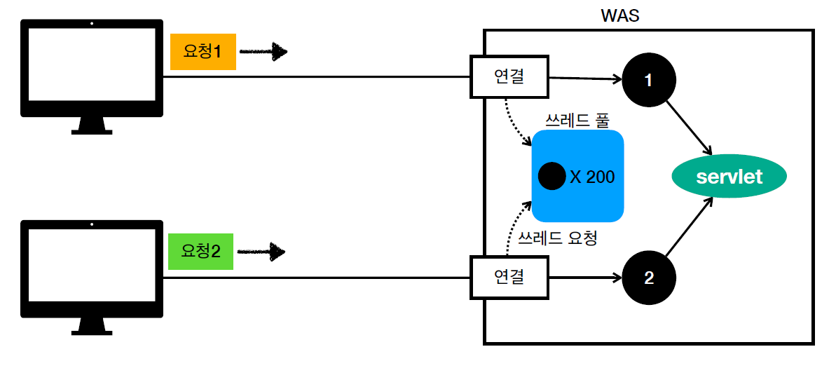 ✔ 서블릿 동작 과정 - 쓰레드 풀 사용