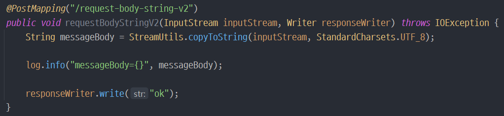 HttpServletRequest를 사용해서 직접 HTTP body에서 데이터를 읽어올 수 있다.