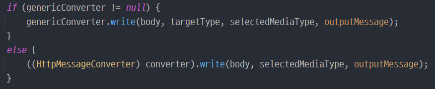 7. writeWithMessageConverters()를 실행하면 응답 데이터 타입에 맞는 컨버터를 얻어온다.