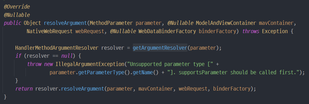 ArgumentResolver는 supportsParameter를 통해 해당 타입을 지원하는 ArgumentResolver를 탐색