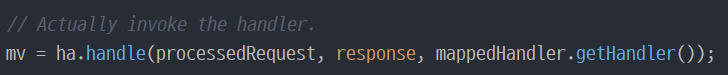 3. doDispatch() 내 handle() 메서드를 호출하여 핸들러 어뎁터 실행