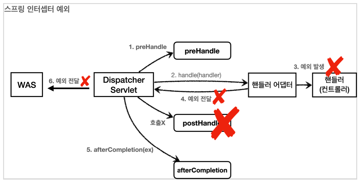 2. postHandle : 컨트롤러에서 예외가 발생하면 호출되지 않는다.