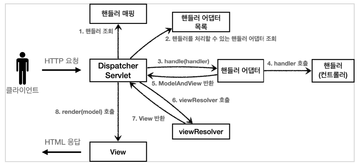 📌 개요 스프링 MVC 구조에서 요청이 들어오면 가장 먼저 Dispatcher Servlet에서 요청과 매핑되는 핸들러를 찾는다. 이 핸들러를 실행하는 주체는 HandlerAdapter다. 그래서 Dispatcher Servlet은 매핑된 핸들