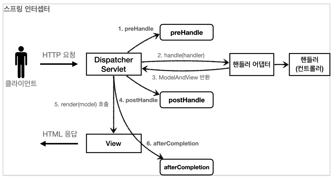 인터셉터는 스프링 MVC 구조에 특화된 필터 기능을 제공한다고 이해하면 된다. 또한, 서블릿 필터보다 더욱 정교한 설정이 가능하기 때문에 스프링 MVC를 사용하고, 특별히 필터를 꼭 사용해야 하는 상황이 아니라면 인터셉터를 사용하는 것이 더 편리하다.