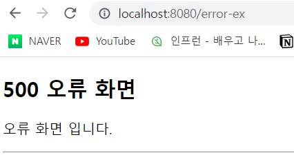 최종적으로 템플릿에서 error-page라는 디렉터리 내에 있는 html 파일을 렌더링 한다.
