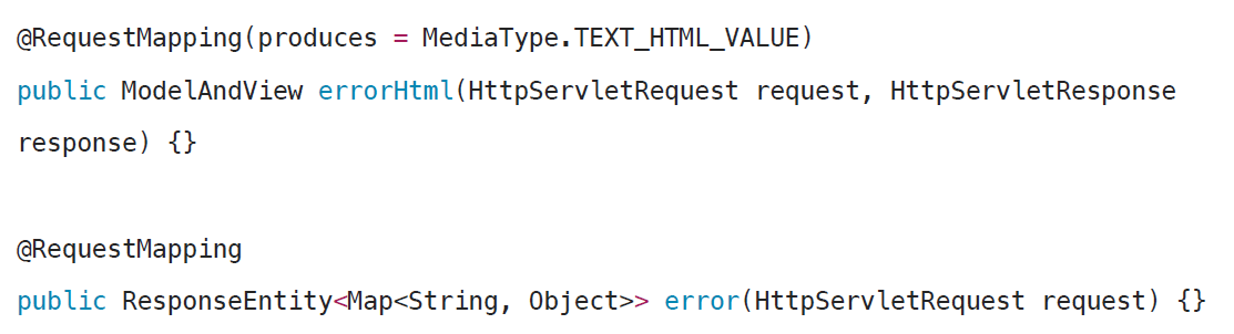 - errorHtml() : 클라이언트 요청의 Accept 헤더 값이 text/html인 경우, error 디렉터리의 뷰를 반환
