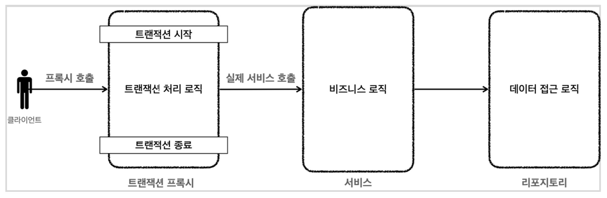 스프링은 AOP 프록시를 사용하여 트랜잭션 처리 부분을 대신 처리하여 서비스 계층으로부터 트랜잭션 로직을 완전히 분리하기 위해 도입한 애노테이션