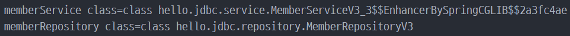 스프링은 @Transactional을 보고 AOP proxy를 생성한다. 아래 로그를 보면 @Transactional을 사용하는 MemberService만 CGLIB 바이트 코드 조작 라이브러리를 통해 생성된 프락시 객체가 사용되고 있다.