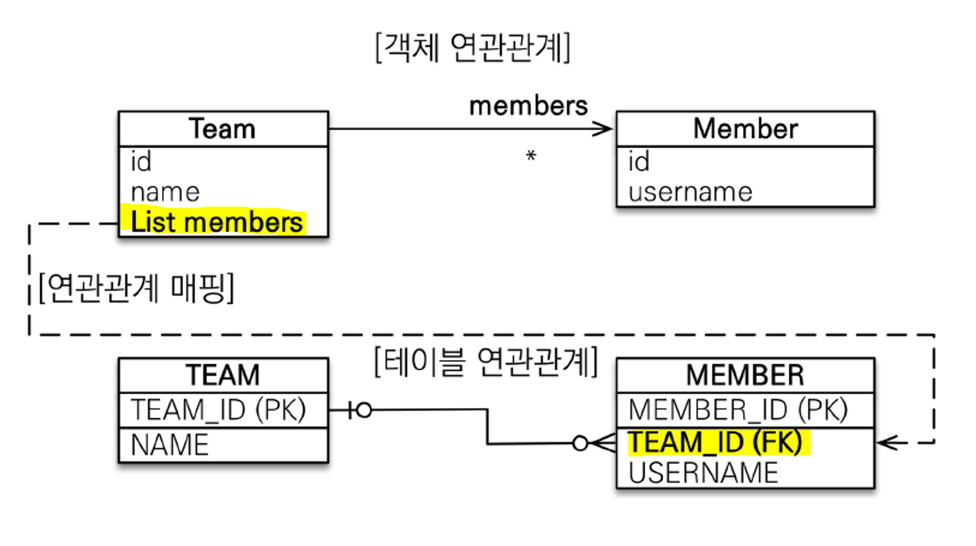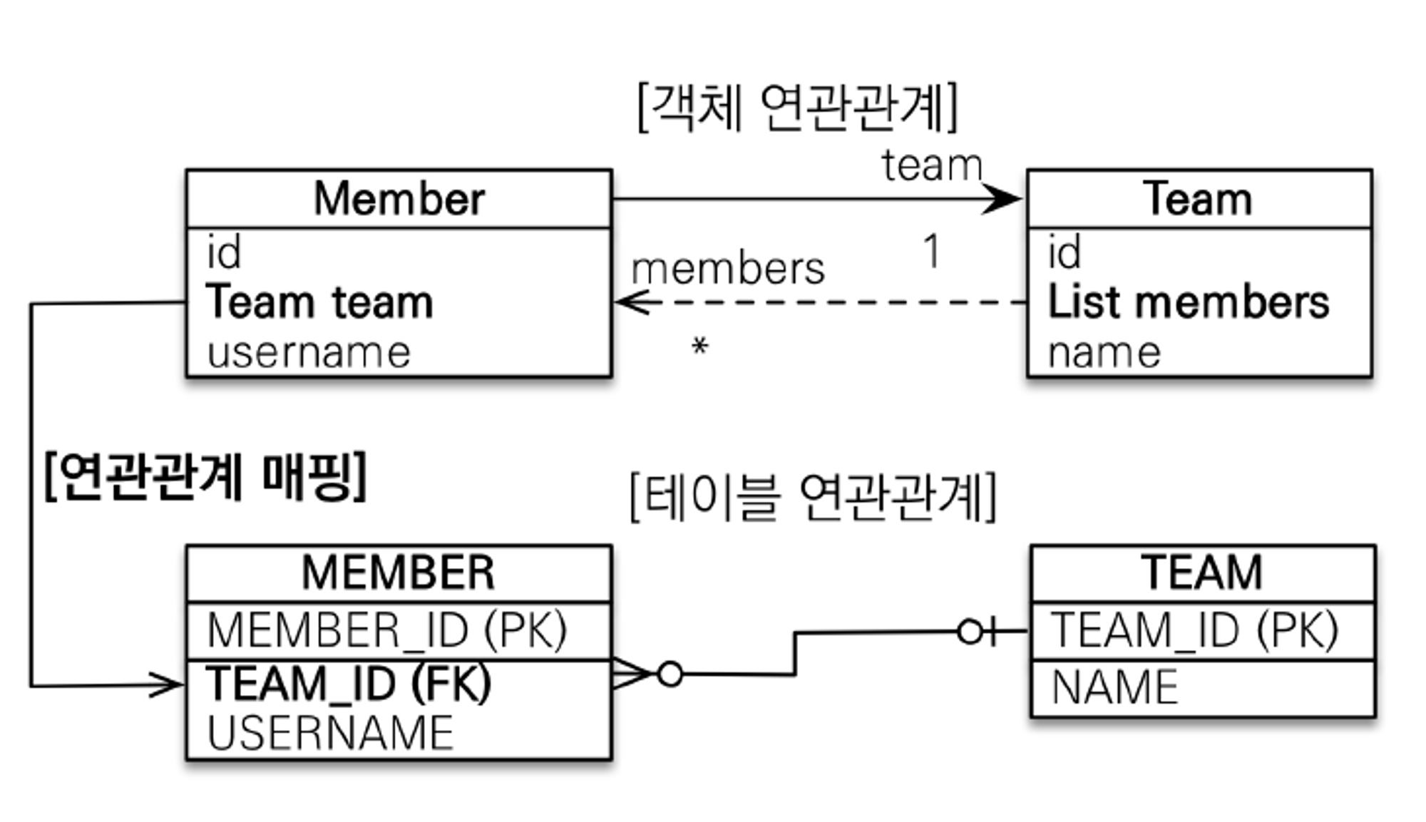 등록과 수정을 할 수 있다는 점이다. 문제는 외래키가 여전히 Member 쪽에 있고, 이는 Member가 여전히 N(다) 입장이기 때문이다.