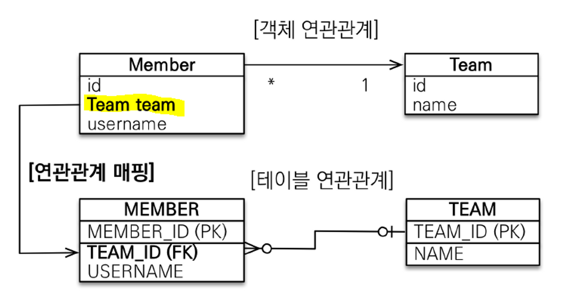 JPA에서 가장 중요한 것 JPA에서 가장 중요한 것을 뽑자면, "객체와 관계형 데이터베이스 테이블이 어떻게 매핑되는지를 이해하는 것"이라고 생각합니다. 🏅 왜냐하면 JPA의 목적인 "객체 지향 프