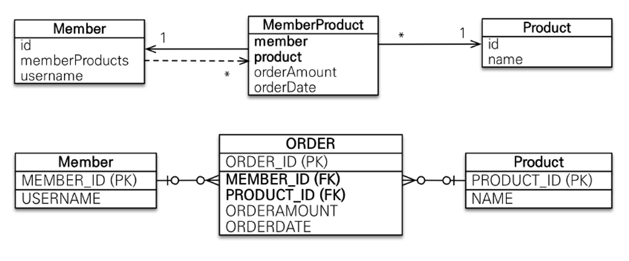 이번 포스트에서는 다대다 관계의 문제점과 해결 방법에 대해서 살펴보자. 다대다 관계 다대다 관계의 예 DB 모델링 과정에서 다대다 관계가 나올 수 있다. 쉽게 생각할 수 있는 관계로는 학생과