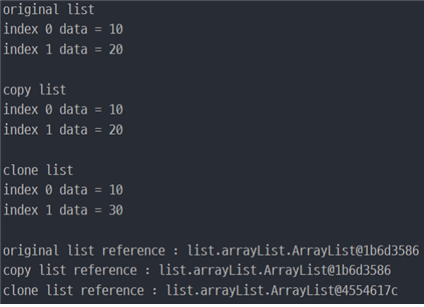 System.out.println("clone list reference : " + clone);