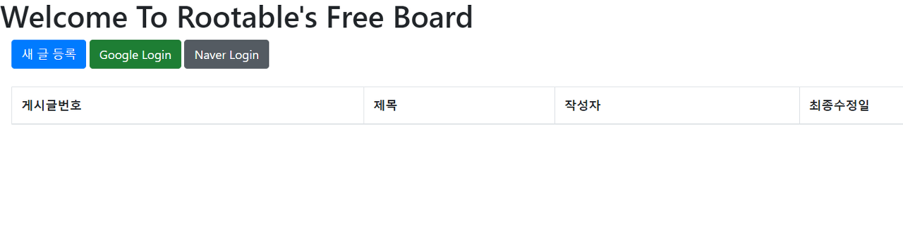 📌 Spring Boot를 이용한 웹 게시판 개발 Create Your Post Read Posts Update Your Post Delete Your Post 📌 Social Login Service Google Naver 📌 AWS를 통해 서비스 자동 빌드 및 테스트 CI/CD >>> 수정 사항 현재 AWS 운영을